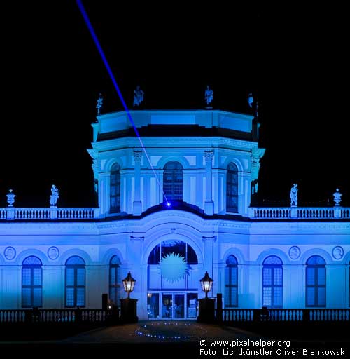 Bildunterschrift: Illumination der Orangerie in Kassel im Rahmen der Blue Monument Challenge aus dem Jahr 2008.
