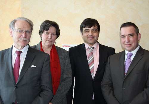 Bildunterschrift: Der wiedergewählte Bundesvorstand des Deutschen Diabetiker Bundes: (v.l.n.r.) Prof. Dr. med. Hermann von Lilienfeld-Toal (Stellvertreter), Edda Stellmach (Schatzmeisterin), Dieter Möhler (Vorsitzender) und Kai Woltering (ebenfalls Stellvertreter). Nicht im Bild: Andrea Witt (Bundesjugendreferentin).