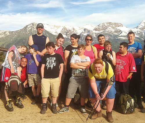 Bildunterschrift: Kinder mit Diabetes und anderen Handicaps auf dem Berg