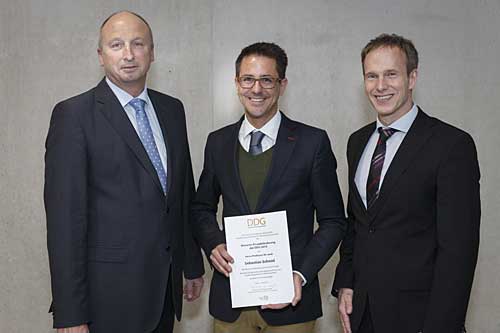 Bildunterschrift: Prof. Dr. Horst Harald Klein, Laudator; Prof. Dr. Sebastian M. Schmid, Menarini-Preisträger 2015; Dr. Stephan Silbermann, BERLIN-CHEMIE AG (v. l. n. r.).