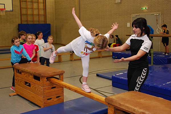 Bildunterschrift: Grundschüler der Matthias-Claudius-Schule beim Turn-Training des SFD '75