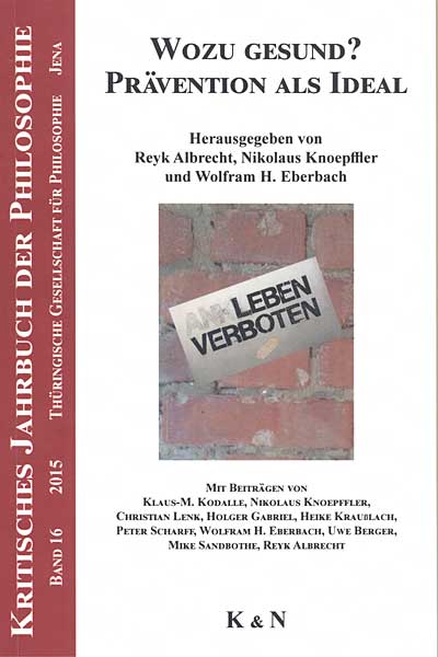 Bibliografische Angaben: Reyk Albrecht, Nikolaus Knoepffler, Wolfram H. Eberbach (Hg.): "Wozu gesund? Prävention als Ideal", Kritisches Jahrbuch der Philosophie, Band 16, Königshausen & Neumann, 2015, 139 Seiten, 19,80 Euro. ISBN 978-3-8260-5828-8