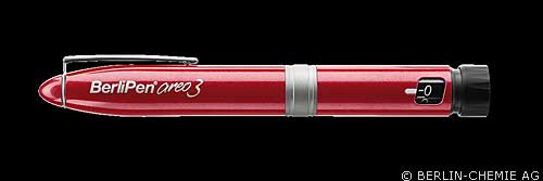 Ab April 2016 stellt die BERLIN-CHEMIE AG die neue Injektionshilfe, den BerliPen® areo 3, für Menschen mit Diabetes zur Verfügung. Das Nachfolgermodell des BerliPen® areo 2 verbindet perfektionierte Funktionalität und Ästhetik miteinander. Durch die innovative Leichtlaufmechanik wird die Insulininjektion leichtgängiger. Die hör- und fühlbare Dosiseinstellung sowie die optimierte Dosisanzeige sorgen für ein besseres Sicherheitsgefühl und eine bessere Lesbarkeit. Ganz neu ist auch das edle BerliPen areo 3 Etui. Es bietet Platz für zwei Insulin-Pens und weiteres Zubehör, z. B. die neuen BerliFine micro-Kanülen mit PentaPoint™-Technologie für eine sanftere Insulininjektion. Der BerliPen areo 3 ist in fünf brillanten Metallicfarben erhältlich und wurde in Deutschland unter höchsten Qualitätsstandards entwickelt, designed und hergestellt.Der BerliPen® areo 3 ist das neue Meisterstück im BerliPen® Portfolio der BERLIN-CHEMIE AG. Die innovative Leichtlaufmechanik resultiert aus der geringeren Gewindeüberdeckung des zweigeteilten Innenrohrs, den optimierten Gewindeoberflächen des Skalenrohrs und der sensitiven Edelstahl-Feder. Das ermöglicht Patienten eine leichtgängigere Injektionsauslösung bei geringem Kraftaufwand. Optimiert wurden außerdem die Dosisanzeige für eine bessere Lesbarkeit und die hör- und fühlbare Dosiseinstellung für ein besseres Sicherheitsgefühl vor der Injektion.
