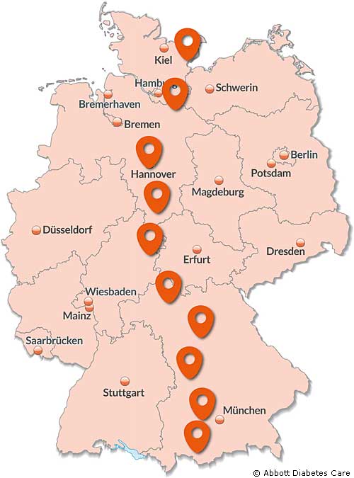 Bildunterschrift: Etappenziele der "Tour de Diabetes"