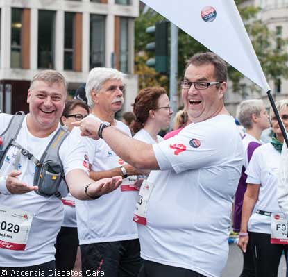 "Teilnahme am RheinEnergie Marathon in Köln - zu Beginn meiner Trainingseinheiten hörte sich das nach einem völlig utopischen Ziel an. Mit einem Körpergewicht von 140 kg konnte ich damals kaum eine Minute am Stück laufen", berichtet Achim Wüstner. Bereits ein halbes Jahr später ging der Läufer mit Diabetes zum ersten Mal über die inoffizielle zehn Kilometer Distanz an den Start. Anfang Oktober lief er schon das dritte Jahr in Folge mit. "Es war wie immer ein atemberaubendes Gefühl, wenn tausende Zuschauer am Streckenrand jubeln und klatschen - auch wenn ich nicht zum Spitzenfeld gehöre, sondern im hinteren Teil mitlaufe." Zusammen mit zahlreichen weiteren Läufern des Diabetes Programm Deutschland (DPD) erreichte der 53-Jährige wohlbehalten das Ziel. Unterstützung erhielten sie von Diabetesberatern und Lauftrainern des DPD, die an mehreren Kontrollpunkten entlang der Strecke für Blutzuckermessungen bereitstanden und die Teilnehmer mit Getränken und Lebensmitteln versorgten.Mit Bewegung die eigene Diabetestherapie unterstützen