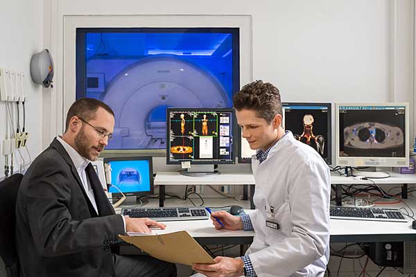 Bildunterschrift: Dass manche Personengruppen aktiveres braunes Fett haben oder insgesamt mehr, dies konnten die Wissenschaftler Tobias Fromme (l.) und Carlos Gerngroß durch die Analyse der PET-Scans belegen.
