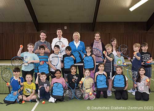 Der Tennisclub Rot-Weiß Düsseldorf führte mit den teilnehmenden Kindern der Initiative "SMS. Sei schlau. Mach mit. Sei fit." des Deutschen Diabetes-Zentrums ein Schnuppertraining durch