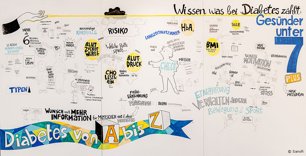 Bildunterschrift: Live mitgezeichnet - Was Experten und Besucher zum Thema Diabetes bewegt, hielt ein Live-Zeichner in Wort und Bild fest.