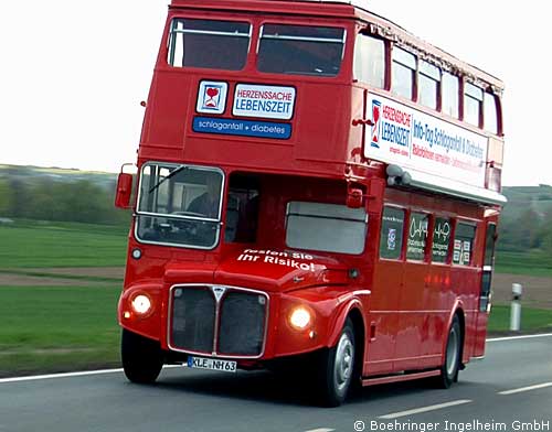 Alle 6 Sekunden stirbt ein Mensch an Diabetes und seinen Folgen. Etwa alle 10 Minuten ereignet sich ein neuer Schlaganfall aufgrund von Diabetes. Um über die Ursachen, Risikofaktoren und Vorsorgeoptionen von Schlaganfall und Diabetes aufzuklären, geht die von Boehringer Ingelheim ins Leben gerufene bundesweite Aufklärungsinitiative "Herzenssache Lebenszeit" in die nächste Runde: Ein roter Doppeldecker-Infobus tourt ab sofort vier Monate durch Deutschland und macht in über 80 Städten halt. Vor Ort haben Interessierte die Möglichkeit, ihr persönliches Risiko testen und sich von Fachärzten beraten zu lassen. Unterstützt wird die Initiative von nationalen Verbänden und Stiftungen sowie regionalen Kliniken und Ärztenetzwerken, lokalen Selbsthilfegruppen und Krankenkassen."Gern möchte ich meinen Teil dazu beitragen, rechtzeitig zu informieren und aufzuklären. Da ich selbst von beiden Krankheiten betroffen bin, liegt mir die Initiative 'Herzenssache Lebenszeit' am Herzen. Gesundheit ist ein hohes Gut, deshalb sind präventive Bemühungen immens wichtig", sagt Karl Kardinal Lehmann, langjähriger Vorsitzende der Deutschen Bischofskonferenz und diesjähriger Schirmherr von "Herzenssache Lebenszeit".
