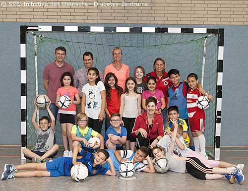 Inka Grings, zweifache Europameisterin im Fußball, Ralf Jaros, mehrfacher Deutscher Meister im Dreisprung, Felix Otto, Weltmeister im Rudern, und Hendrik Beyer, mehrfacher Deutscher Meister und Olympiateilnehmer im Hochsprung, besuchen die teilnehmenden Grundschulen der Initiative "SMS. Sei schlau. Mach mit. Sei fit." des Deutschen Diabetes-Zentrums. Die Schülerinnen und Schüler haben die Gelegenheit Sportlerinnen und Sportler hautnah kennenzulernen und ihnen Fragen rund um ihre Sportart, die Wettkämpfe und das Training sowie das Leben als Leistungssportler zu stellen. Anschließend findet eine gemeinsame Bewegungseinheit statt. Durch ausgewählte Übungen bringen die Spitzensportler den Kindern ihre Sportart näher und vermitteln ihnen spielerisch die Freude an der Bewegung."Den Themen Ernährung und Bewegung wird in der heutigen Zeit leider oft zu wenig Aufmerksamkeit geschenkt. Ich glaube, dass man durch die SMS-Initiative diese Themen für die Kids interessant und spannend gestalten kann und somit ist es für mich nur selbstverständlich, vor allem als gebürtige Düsseldorferin, diese Initiative zu unterstützen.", begründet Inka Grings Ihr Engagement. "Wer könnte die Wichtigkeit von regelmäßiger Bewegung und einer ausgewogenen Ernährung glaubhafter vermitteln als erfolgreiche Sportlerinnen und Sportler.", unterstreicht Projektleiter Prof. Dr. Karsten Müssig die Bedeutung der Paten in der SMS-Initiative.
