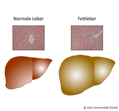 "In unserer Studie konnten wir am Mausmodell erstmals zeigen, dass im Rahmen einer Adipositas Fas offenbar aktiviert wird und so zur Entstehung einer Lebersteatose beitragen kann. Mäusen, denen Fas in den Leberzellen fehlte, waren vor der Entwicklung einer solchen Leberverfettung weitgehend geschützt", sagt Prof. Daniel Konrad, Professor für Endokrinologie und Diabetologie an der Universität Zürich und Arzt am Kinderspital Zürich. Die Tiere entwickelten ebenfalls eine deutlich geringere Insulinresistenz. "Umgekehrt führte in unserer Studie ein erhöhter Fas-Gehalt in der Leber auch bei normalem Körpergewicht zu einer Lebersteatose und zu einer entsprechenden Insulinresistenz", erklärt Konrad.