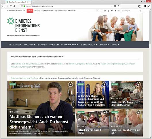 Bildunterschrift: Screenshot der Startseite des Diabetesinformationsdienstes