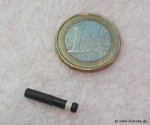 Über dem Sensor wird weiterhin der abnehmbare Smart Transmitter mit einem Pflaster auf der Haut befestigt. Dieser überträgt die kontinuierlich gemessenen Daten auf das Smartphone und vibriert bei einem zu hohen oder zu niedrigen Glukosewert direkt am Körper - auch wenn das Smartphone gerade mal nicht in der Nähe ist.