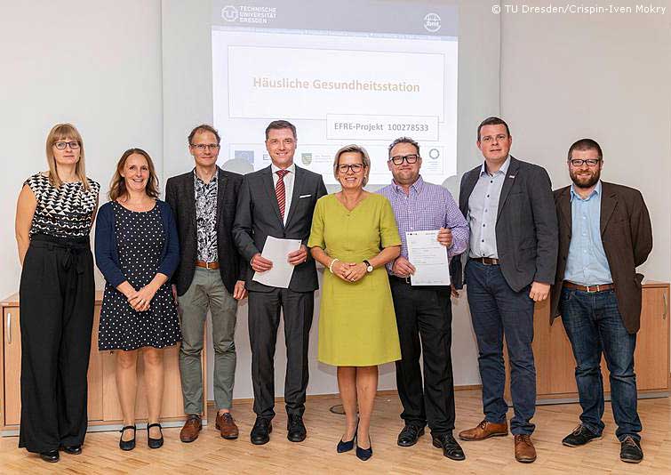 Sachsens Gesundheitsministerin Barbara Klepsch überreichte zum Auftakt am 21.09.2018 den entsprechenden Fördermittelbescheid. "Mit der Digitalisierung im Gesundheitswesen eröffnen sich auch für die Behandlung chronisch kranker Menschen neue Möglichkeiten", betont Frau Staatsministerin Klepsch. "Durch das Projekt wird das Selbstmanagement für Herzinsuffizienzpatienten nachhaltig und effizient gestärkt." Zunächst wird im Projekt "Häusliche Gesundheitsstation" eine neuartige medizinische Messtechnik entwickelt. Dabei liegt ein besonderes Augenmerk auf der Bedienfreundlichkeit für die Patienten. Prof. Hagen Malberg sagt dazu: "Uns geht es tatsächlich um eine neue Generation von Medizintechnik, die Barrieren auf der Nutzerseite verringert und damit von den Patienten auch gern eingesetzt wird und nicht wie ein Hometrainer nach drei Wochen in der Ecke verstaubt." Die Ergebnisse des Projektes sollen in bereits am Markt bestehende, funktionierende/bewährte Smart-Home-Lösungen eingebaut werden. Genau deshalb sind auch Industriepartner wie Jendrzik Haustechnik in das Projekt integriert.