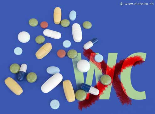Hinweis der DiabSite-Redaktion: Entsorgen Sie alte Medikamente bitte im Restmüll, wenn die Tonne recht leer ist. Oben könnten Kinder die "bunten Smarties" finden und vielleicht probieren.