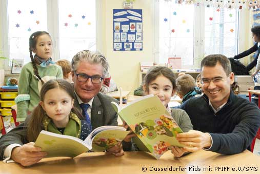 Projektleiter Prof. Dr. Karsten Müssig erklärte: "Kinder frühzeitig für eine ausgewogene und bewusste Ernährung und mehr Bewegung zu sensibilisieren, ist uns ein großes Anliegen.". Grundlage des Kochbuches "Kochen mit PFIFF - Natürlich. Ausgewogen. Lecker. bilden die Lieblingsrezepte der teilnehmenden Kinder der SMS-Initiative. Auch Patinnen und Paten der SMS-Initiative haben ihr Lieblingsgericht aus Kindertagen für das Kochbuch beigesteuert. Zwei der SMS-Paten, die bei der Entstehung des Kochbuches mitgewirkt haben, sind der Düsseldorfer Bäckermeister, Georg Kretzschmar, sowie der ehemalige Olympiateilnehmer und Deutsche Meister im Hochsprung, Hendrik Beyer. "Die Ernährung spielt eine entscheidende Rolle für die Entwicklung von Kindern und trägt zum Wohlbefinden bei. Noch heute freue ich mich immer, wenn es zu Hause Quarkkeulchen gibt, deshalb teile ich das Rezept gerne mit den Kindern der SMS-Initiative.", begründet Georg Kretzschmar sein Engagement.