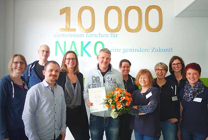 Bildunterschrift: Das NAKO-Team begrüßte am 18. März 2019 den 10.000. Teilnehmer.