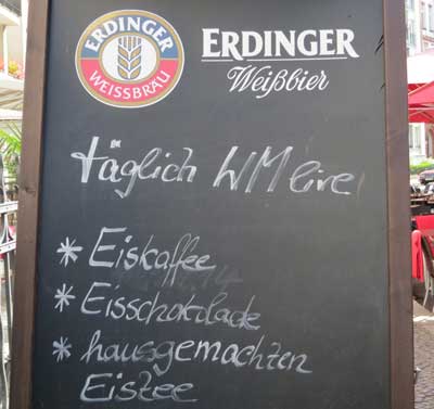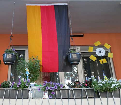 Beflaggt wurden auch Balkone und Lokale luden zum „Public Viewing“ ein. Zu Weißbier, Eiskaffee, Eisschokolade und hausgemachtem Eistee boten viele in den letzten Wochen einen großen Monitor, auf dem die Spiele der Weltmeisterschaft übertragen wurden.